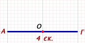 Αρχικά χάραξε τη διαγώνιο ΑΓ = 4 εκ και σημείωσε το μέσο της Ο στα 2 εκ.