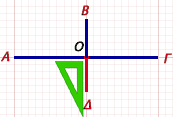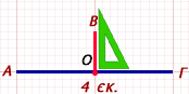 Τοποθέτησε το τρίγωνό σου στο μέσο Ο και χάραξε την κάθετο ΟΒ=1,5 εκ.